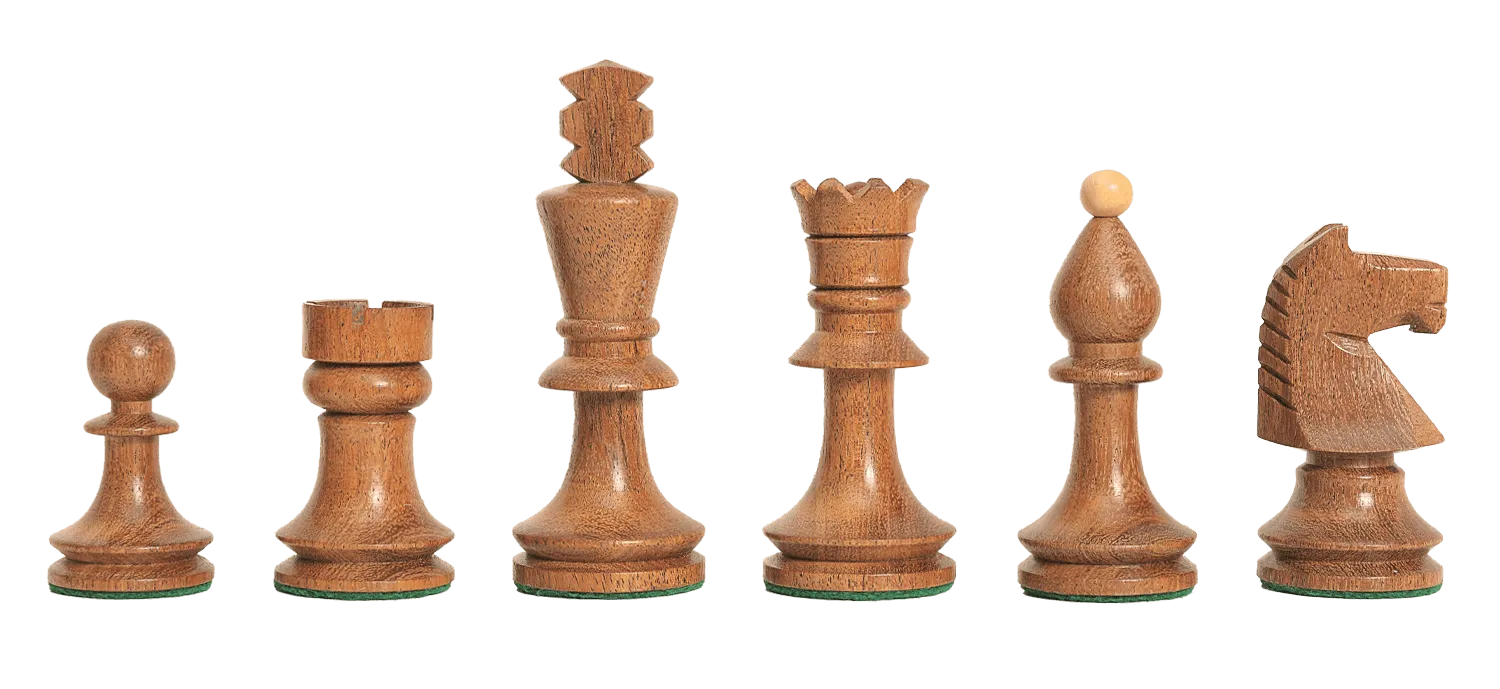 The House of Staunton is proud to offer the Hungarian II Series Chess set. A full tournament-sized Chess set, it features a 3.875" King with a 1.5" diameter base. The Chess pieces are hand carved by our master artisans and crafted out of the highest grade woods. The Chess pieces are heavily weighted with luxurious billiard cloth base pads and a beautiful finish.