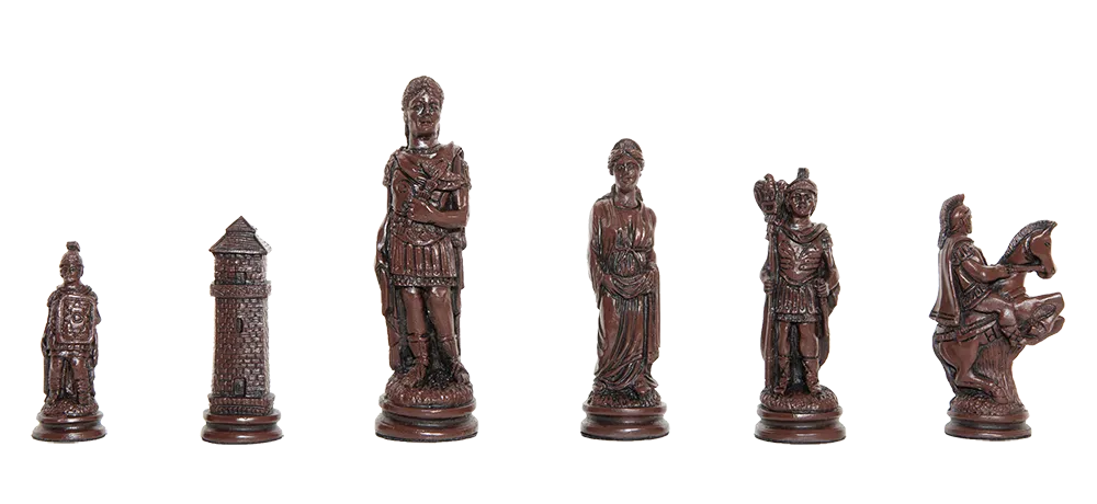 Roman Themed Chess Pieces - Brown & Natural
