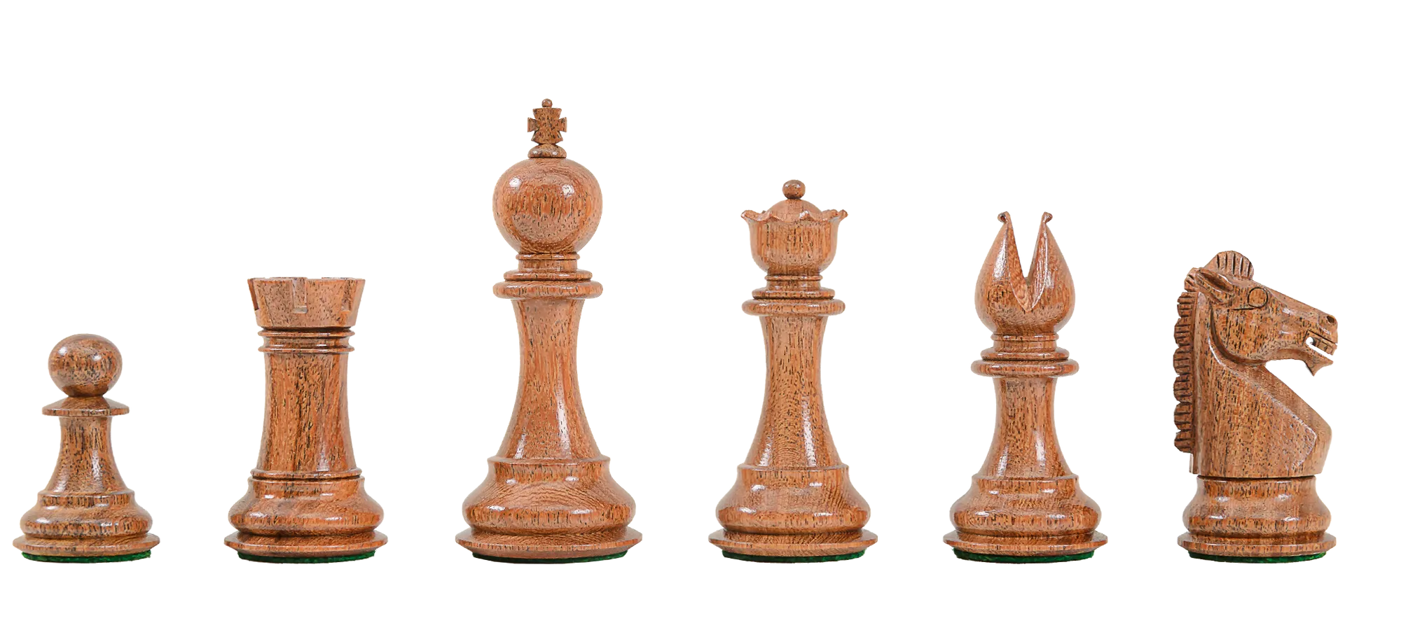 The House of Staunton is proud to offer the Bedford Series Chess set. Designed by the Maestro, this full tournament-sized Chess set features a 3.75" King with a 1.6" diameter base. The Chess pieces are hand carved by our master artisans and crafted out of the highest grade woods. The Chess pieces are heavily weighted with luxurious billiard cloth base pads and a beautiful finish.