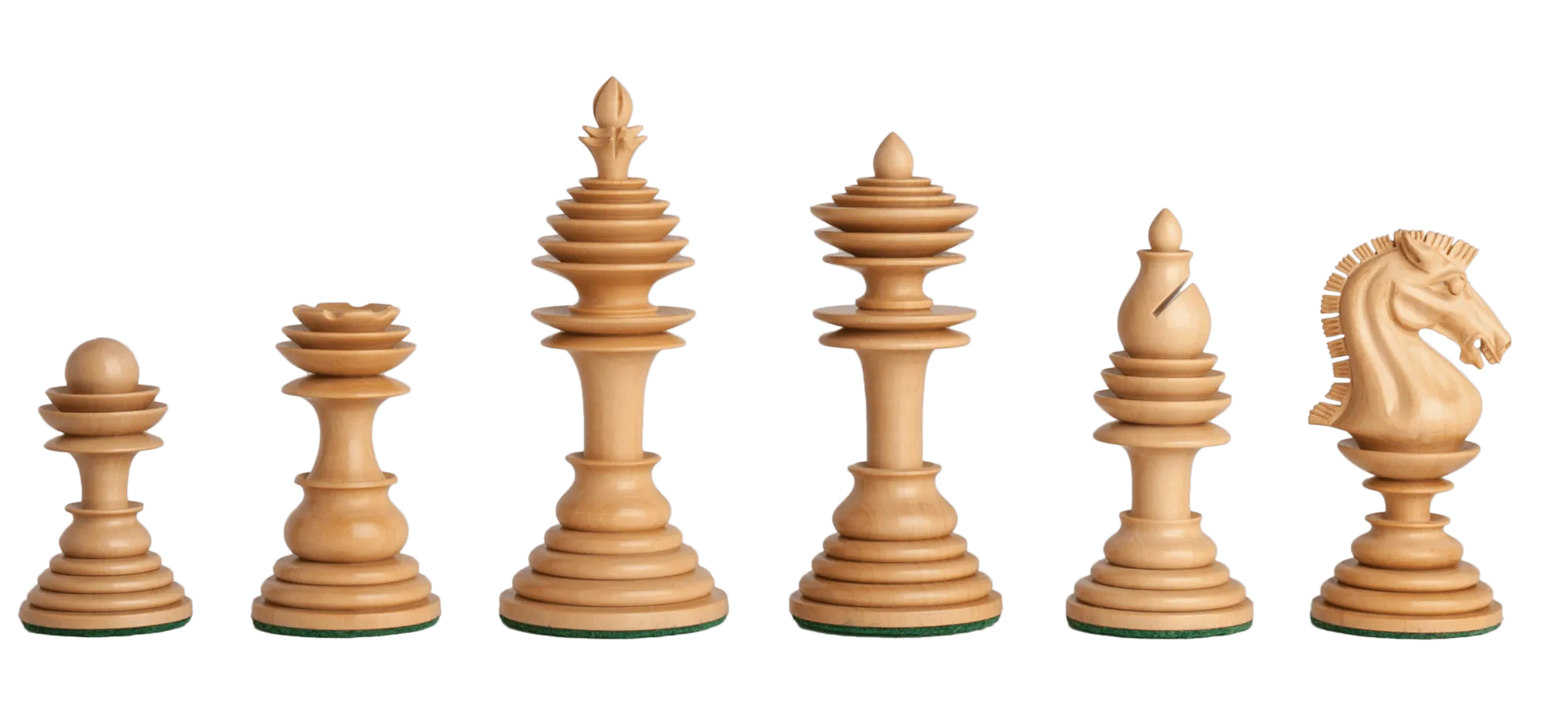 The House of Staunton is proud to introduce our newest masterpiece - The Bristol Timeless Series Chessmen. Part of our Timeless Collection, it is a wholly original design from the Maestro himself, Frank A. Camaratta, Jr. These Chessmen feature a 4.5" King with a 1.85" Diameter base and are very heavily weighted.