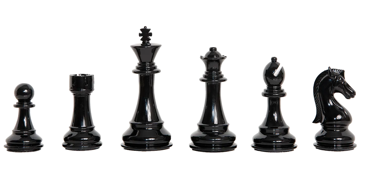 The House of Staunton is proud to offer the Candidates Series Chess set. It features a 4.25" King with a 1.85" diameter base. The Chess pieces are heavily weighted with  black base pads and a rich polish finish.