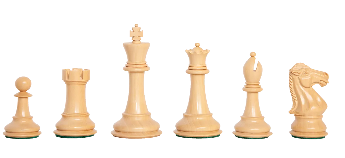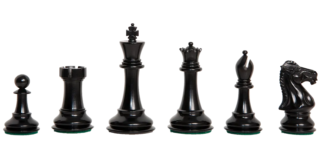 The House of Staunton is proud to offer the Capablanca Series Chess set. A full tournament-sized Chess set, it features a 4.0" King with a 1.8" diameter base. The Chess pieces are hand carved by our master artisans and crafted out of the highest grade woods. The Chess pieces are heavily weighted with luxurious billiard  cloth and a beautiful finish with the Kings featuring Gold Embossed English Leather. The design of the Capablanca Series Chess set captures the exquisite design and proportions of the Staunton Chess Sets produced during the 1920s, which is widely regarded as the Golden Age of Chess The distinctive features of this set are its slender, elegant form and its superbly carved Knight design. The Capablanca Series Chess set is ideal for those that are interested in an heirloom quality Chess set that follows classical Staunton proportions, but at the same time has a very elegant and distinctive appearance.