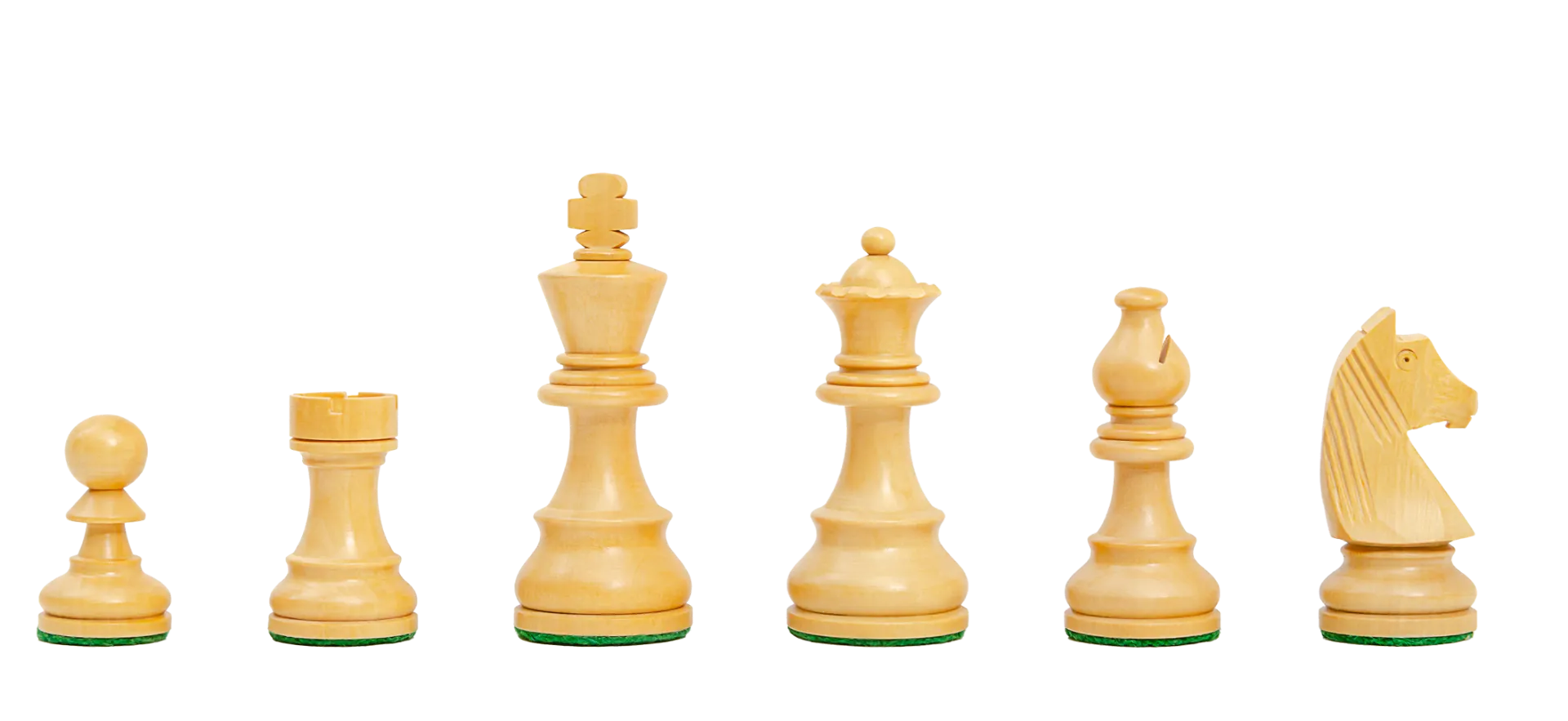 Play like a champion with the Championship Chess Set. An exact reproduction of the European Pattern Chessmen, it has been used at every major chess Chapionship match for the past ten years. The list of tournaments that have used these Chessmen include The US Chess Championship, FIDE Olympiads, Linares, Dortmund, Wijk Aan Zee and many more.