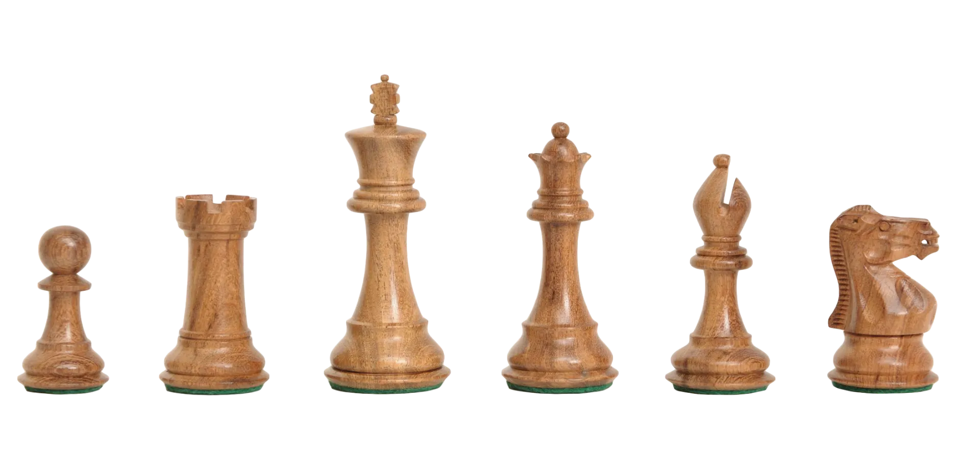 The House of Staunton is proud to offer the Congress Series Chess set. A full tournament-sized Chess set, it features a 3.75" King with a 1.5" diameter base. The Chess pieces are hand carved by our master artisans and crafted out of the highest grade woods. The Chess pieces are heavily weighted with luxurious billiard cloth base pads and a beautiful finish.