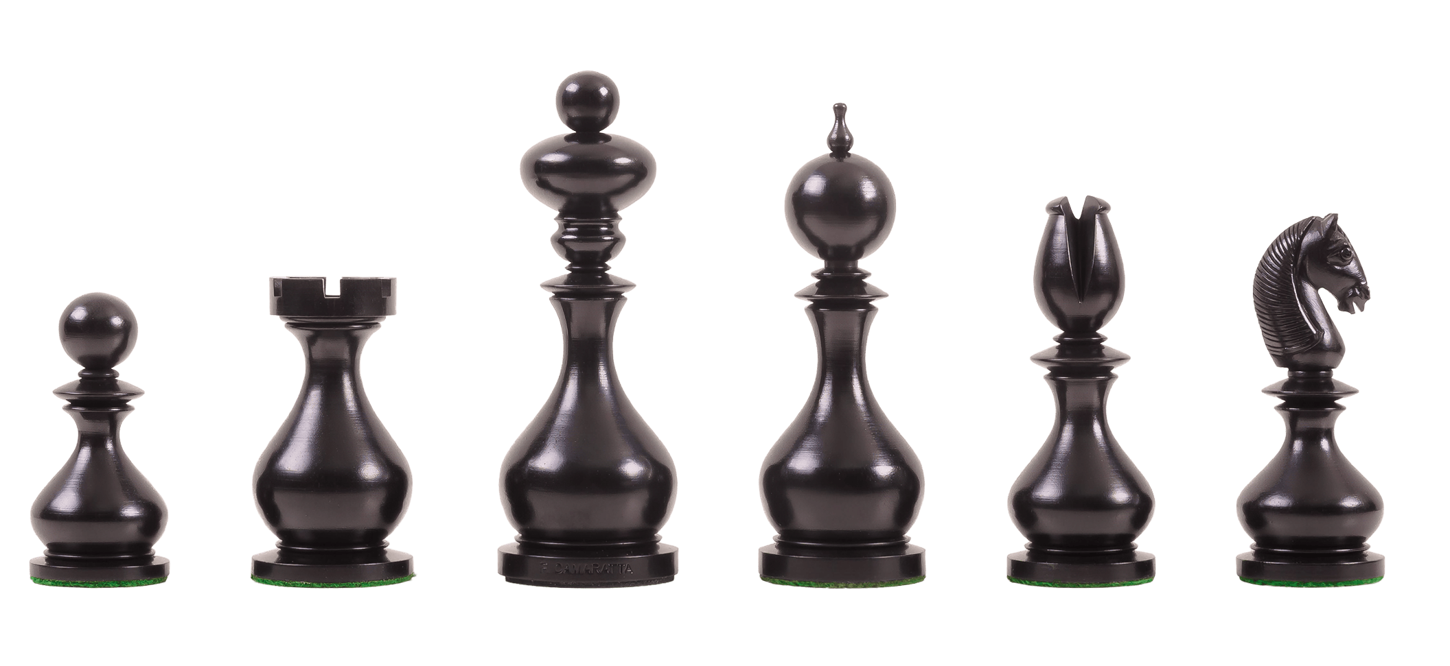 The House of Staunton is pleased to present an exceptional historical recreation - The Dublin Luxury Chess Pieces. Meticulously researched and executed by Frank Camaratta, this superb set has been crafted from the finest Boxwood and Ebony to authentically recapture the elegance and character of the original early-Victorian design. The King stands at an impressive 4-1/8" in height with a 1-1/2" diameter base, offering a dignified silhouette that reflects the distinguished craftsmanship of the late 1830s.