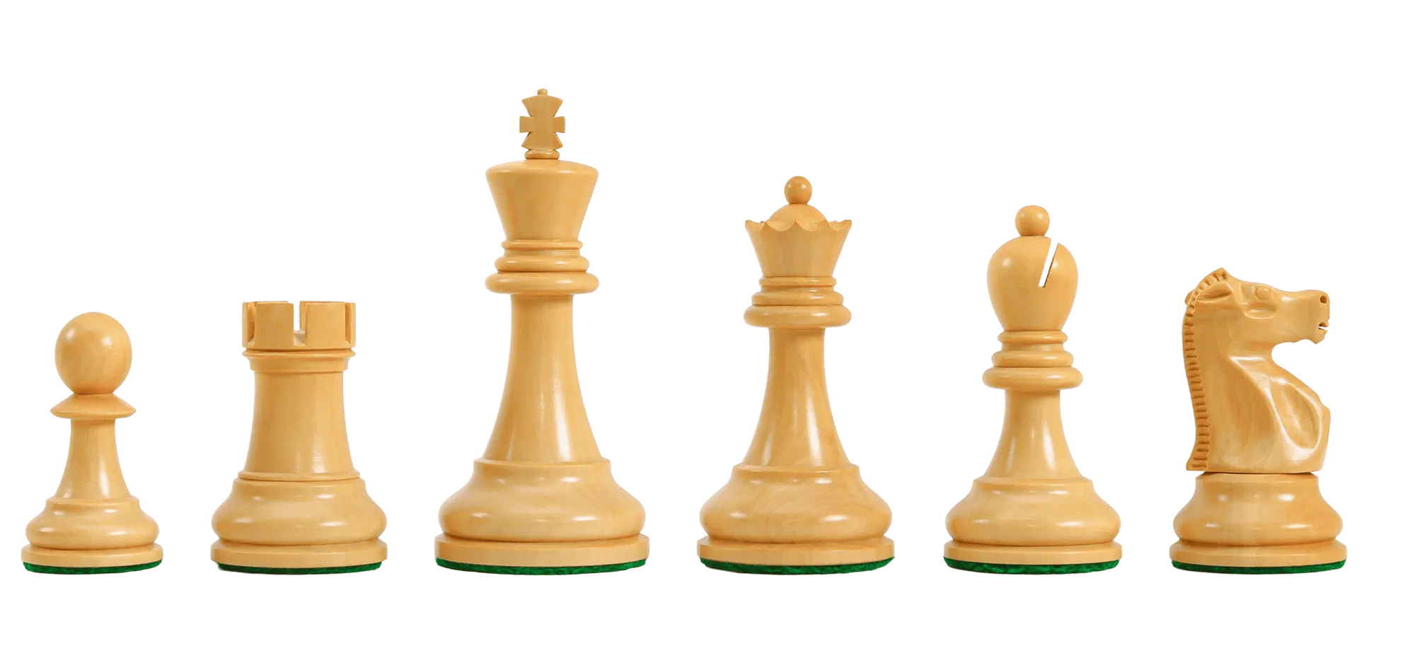 The House of Staunton is proud to offer the Fischer Spassky Series Commemorative Chess Pieces. It features a 3.75" King with a 1.625" diameter base. The Chess pieces are hand carved by our master artisans and crafted out of the highest grade woods. The Chess pieces are heavily weighted with luxurious billiard cloth base pads and a beautiful finish. These Chessmen have been designed for those players looking for exceptionally well-crafted wooden Chessmen at a very reasonable price. We at the House of Staunton understand that not everyone can afford one of our luxury Chess sets, so we proudly offer the Fischer Spassky Series Commemorative Chessmen for your consideration - A high-quality wooden Chessmen at a reasonable price!