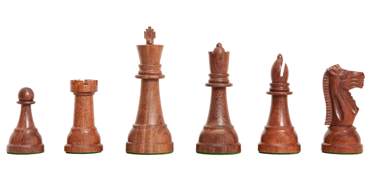 The House of Staunton is proud to offer the Reproduction of the Circa 1950's Gallant Knight Series Chess Pieces. It features a 5.0" King with a 1.9" diameter base. The Chess pieces are hand carved by our master artisans and crafted out of the finest woods. The Chess pieces are heavily weighted with luxurious billiard cloth base pads and a beautiful finish.