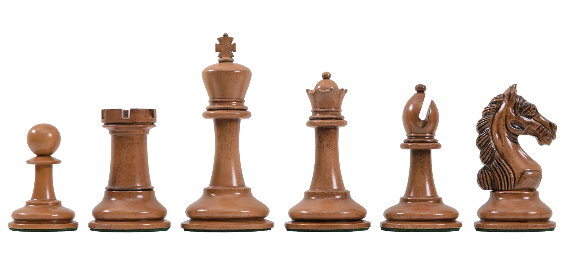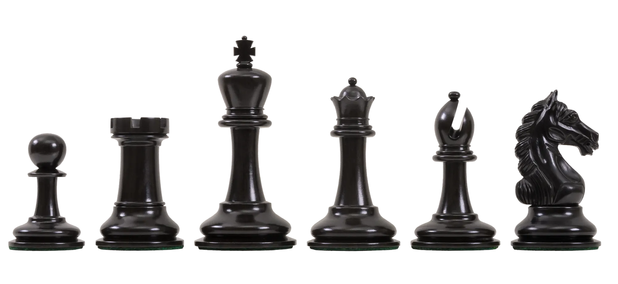 To pamper you, The House of Staunton is proud to offer the Gladiator Series Luxury Chess set. This full-tournament sized chess set features a 4" King with a 1.9" diameter base. The Chess pieces are hand carved by our master artisans and crafted out of the highest grade woods and are heavily weighted with gold embossed English Leather base pads under the Kings and luxurious billiard cloth base pads on the other chess pieces.