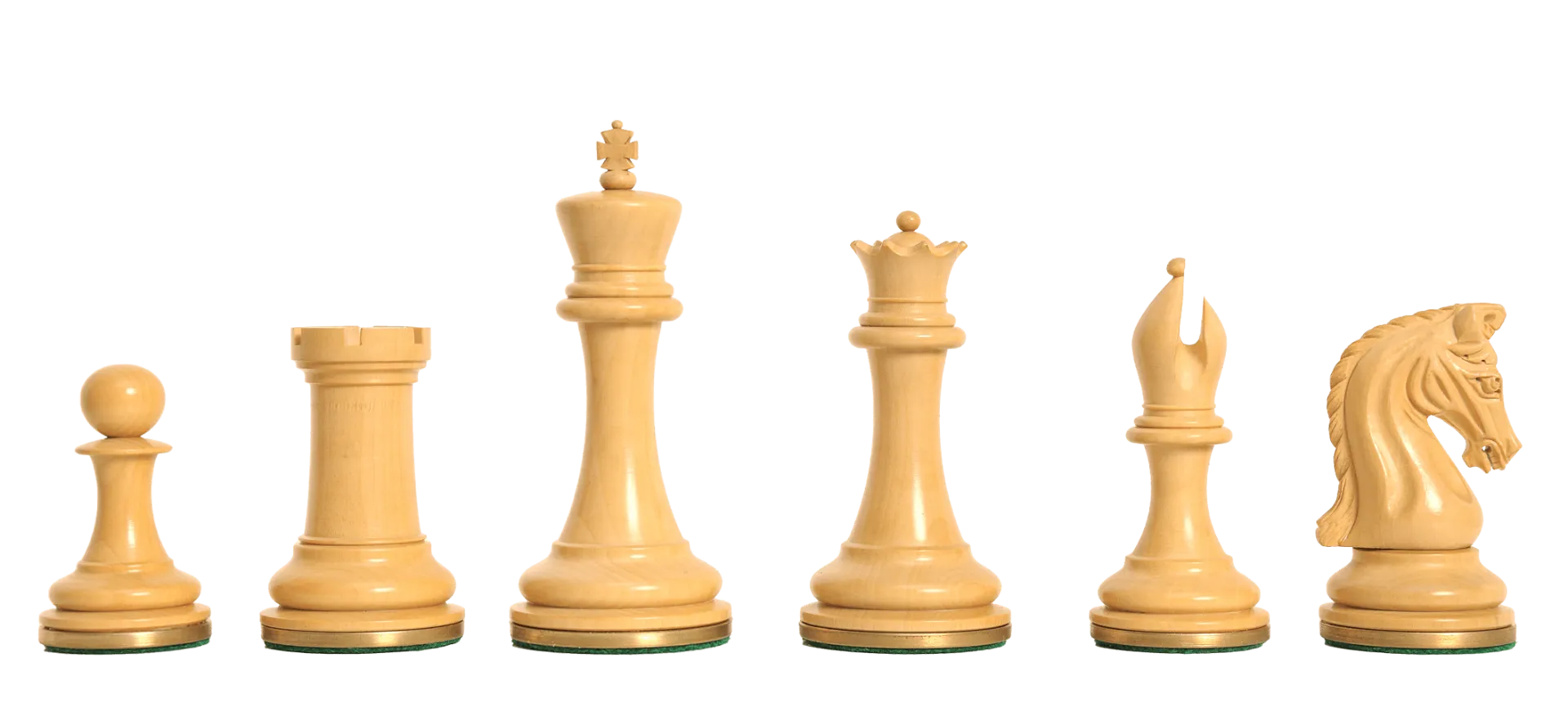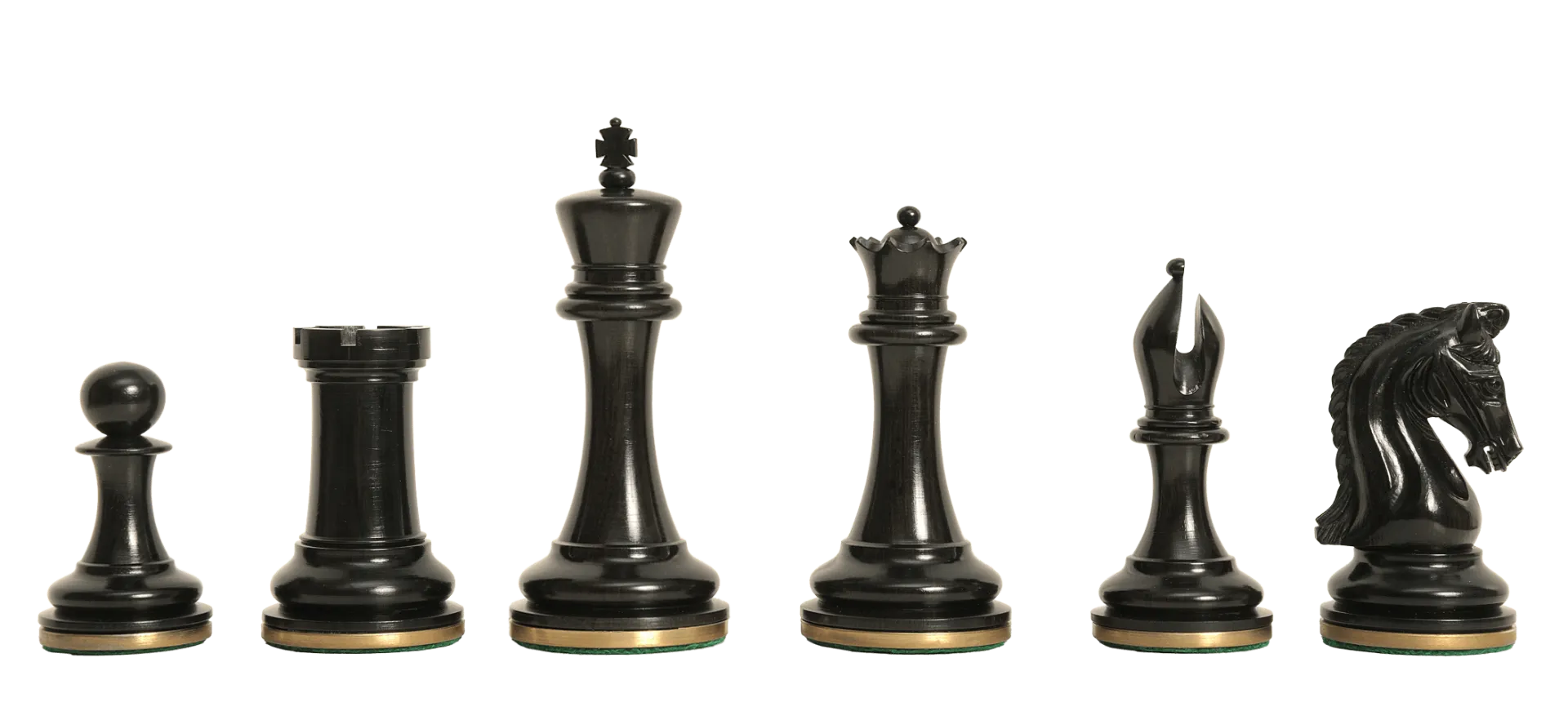 To pamper you, The House of Staunton is proud to offer the Imperial Collector Series Luxury Chess set. This full-tournament sized Chess set features. A full club-sized Chess set, it features a 4.4" King with a 1.9" diameter base. The Chess pieces are hand carved by our master artisans and crafted out of the highest grade woods. The Chess pieces are heavily weighted with embossed English Leather base pads under the Kings, luxurious billiard cloth base pads on the other Chess pieces. The Collector Series Luxury Chess set has been crafted to replicate the design and proportions of the original Staunton pattern Chessmen, registered by Nathaniel Cooke in March of 1849 and first manufactured by Jaques of London in September 1849. The distinctive feature of this set is the the open-mitered Bishop and original Knight design, which was originally sculpted by the Maestro, Frank A. Camaratta, Jr. With it's downturned head, flowing mane and aggressive facial expression. this is one of the finest Knights ever to grace the 64 square battlefield.