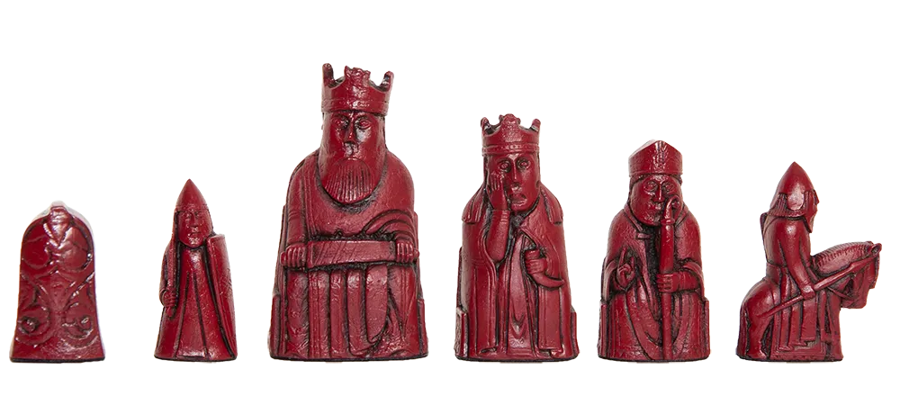 The Isle of Lewis Antiqued Chess Pieces - Red and Natural The Isle of Lewis Antiqued Chess Pieces - Red and Natural