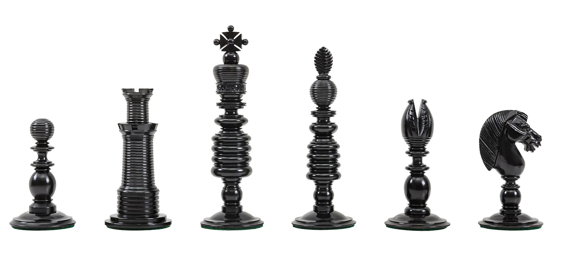 "Crafted to mimic the exquisite design and detail of the Circa 1800 Chessmen from the renowned workshop of George Merrifield."