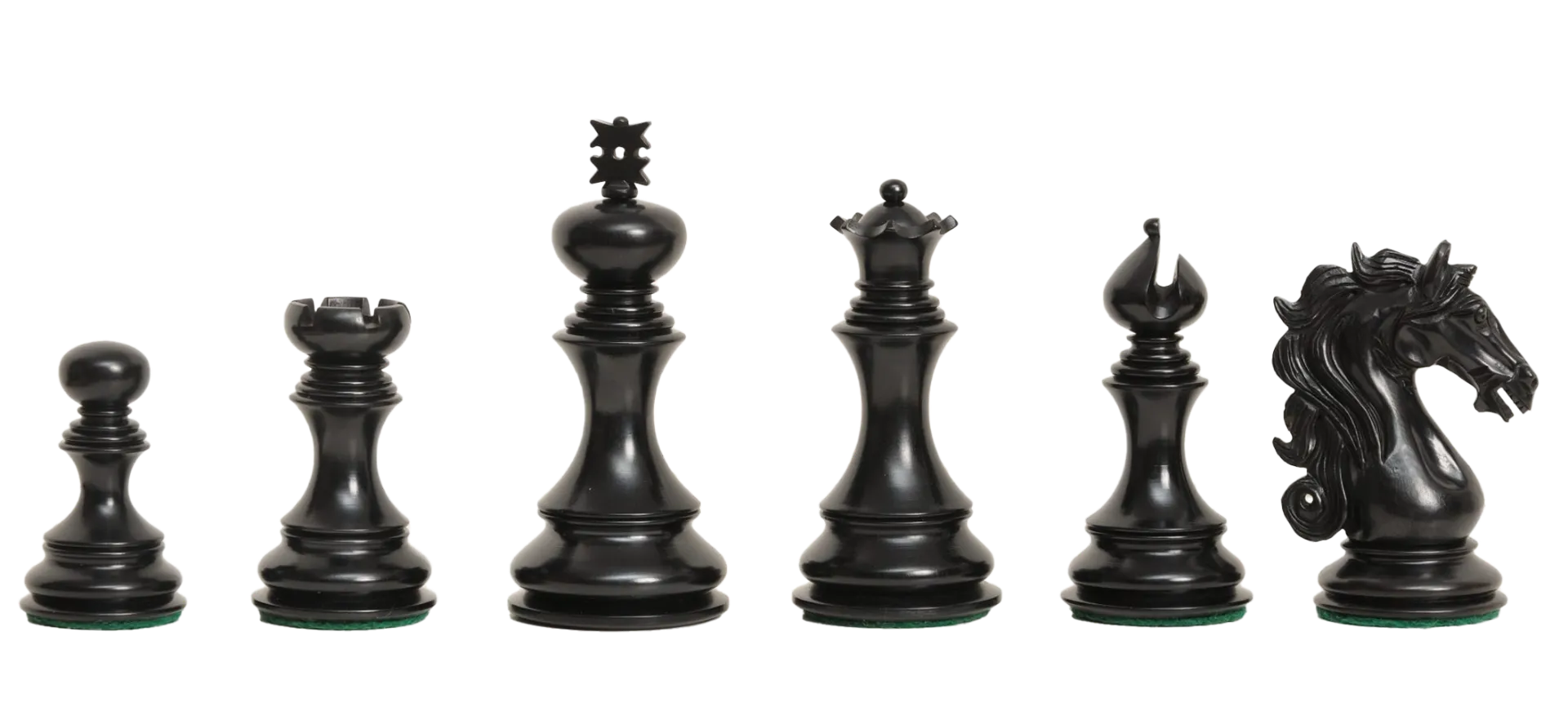 The House of Staunton is proud to offer the Ravenna Series Luxury Chess Set. A full club-sized Chess set, it features a 4.4" King with a 1.875" diameter base. The Chess pieces are hand carved by our master artisans and crafted out of the highest grade woods. The Chess pieces are heavily weighted with a beautiful finish. The Kings feature English Leather embossed with House of Staunton logo. All other pieces feature luxurious green baize.