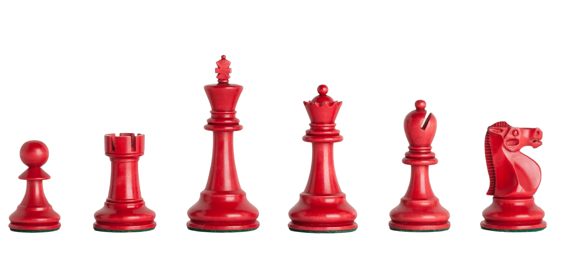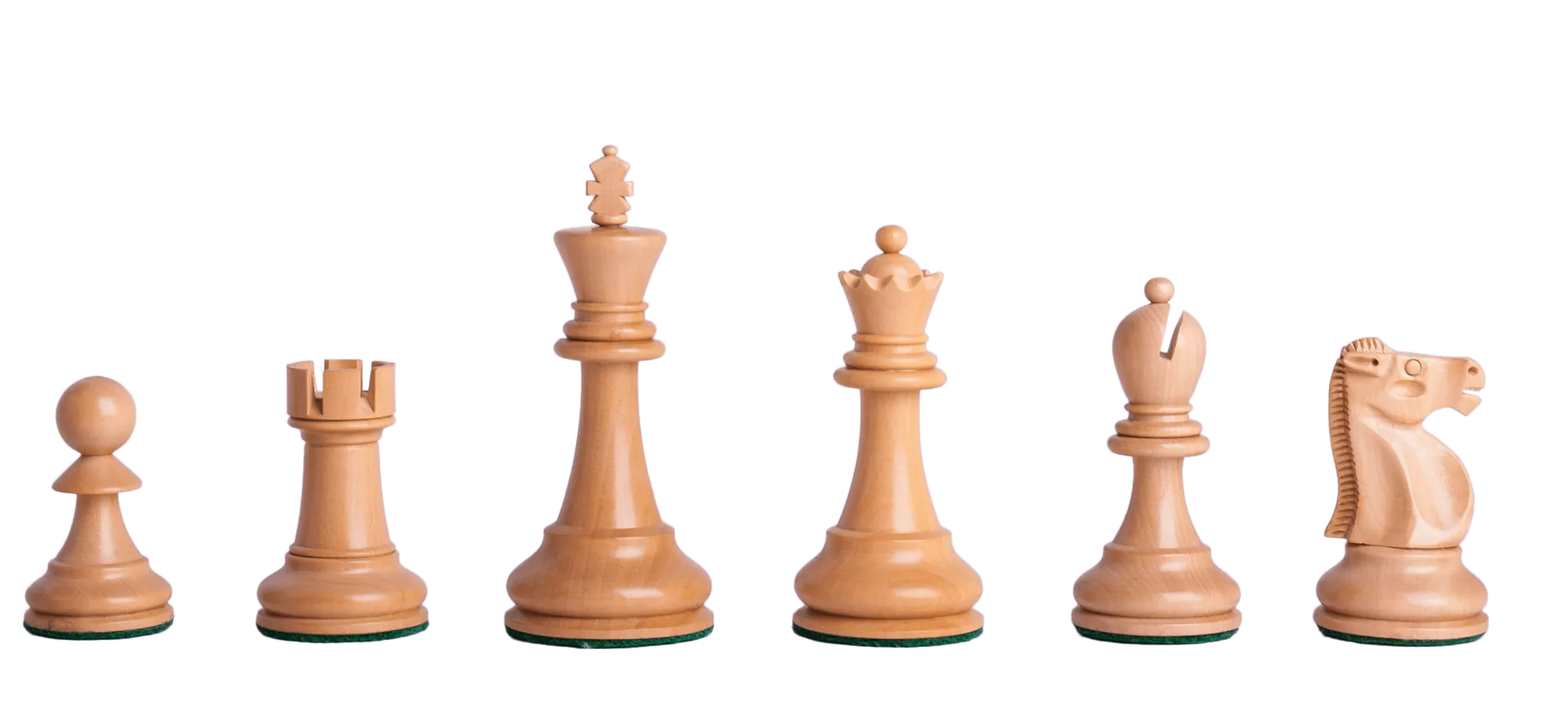 Gilded, whose definition means "to give an enhanced appearance", is the perfect way to describe these Chess pieces. Our master artisans hand apply a finish to Natural Boxwood Chess pieces to create the striking assortment of wood colors options that you see above. This allows us to offer our Gilded Collection at a very reasonable price, while still delivering the highest aesthetic experience to our customers. Further, because both armies are crafted out of Boxwood, they are extremely durable and highly resistant to developing hair line cracks.