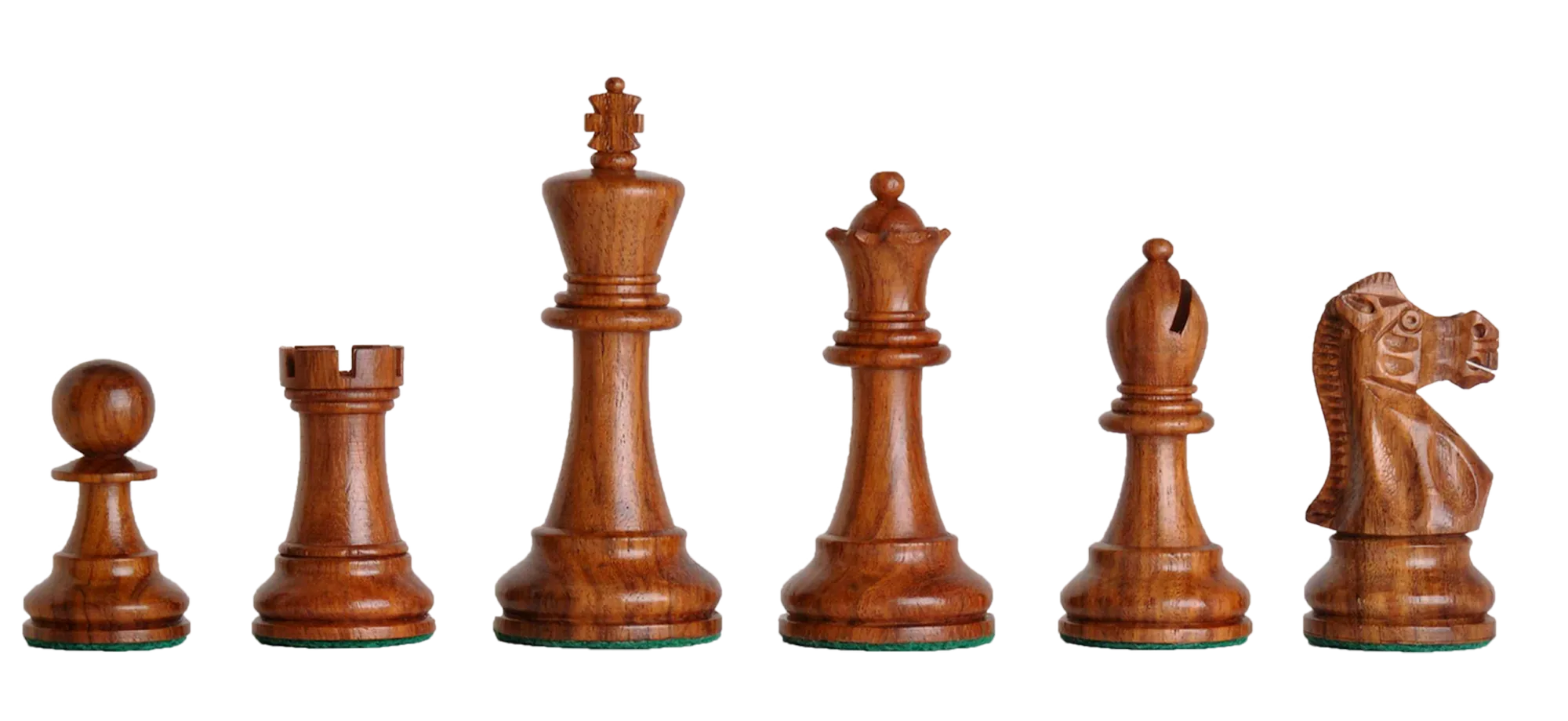 The House of Staunton is proud to offer the Wild Knight Series Chess set. A full tournament-sized Chess set, it features a 3.75" King with a 1.6" diameter base. The Chess pieces are hand carved by our master artisans and crafted out of the highest grade woods. The Chess pieces are heavily weighted with luxurious billiard cloth base pads and a beautiful finish.